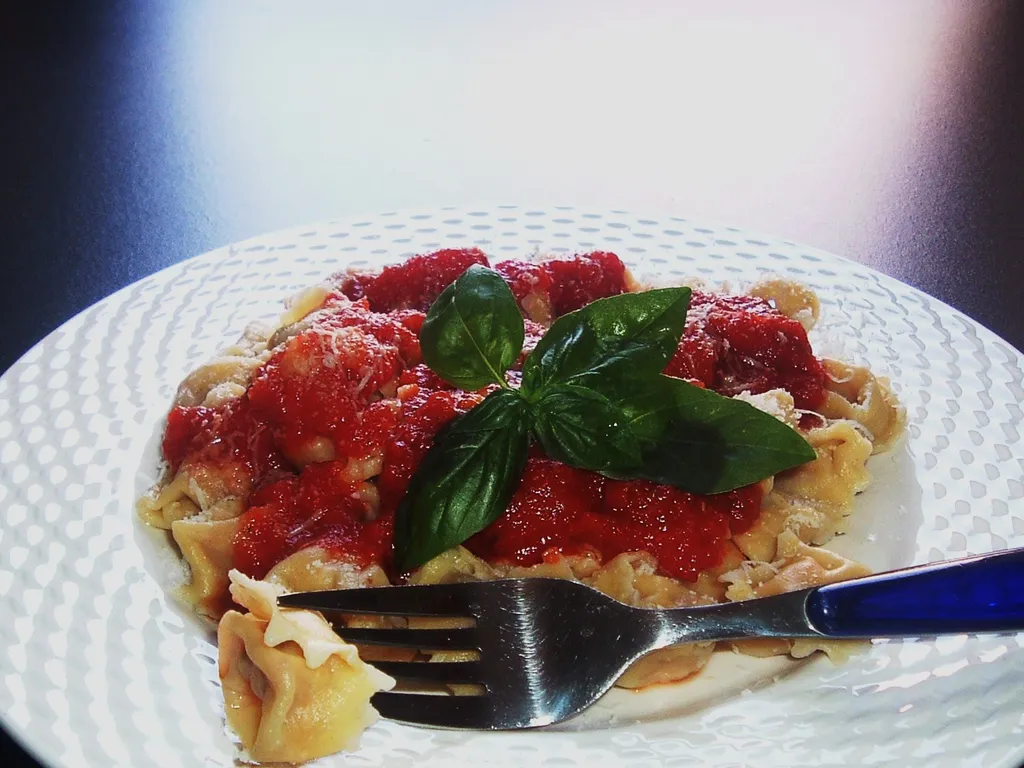 Za umak na malo maslinovog ulja stavite cesanj cesnjaka pa ga malo prodinstajte . Odstranite cesnjak i, dodajte konzervu rajcica pa ih dobro zgnjecite . Dodajte malo Vegete ili soli , zalijte sa malo vode i kuhajte dvadesetak minuta . Kad je umak gotov dodajte mu malo bosiljka .